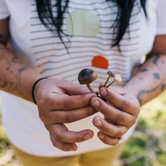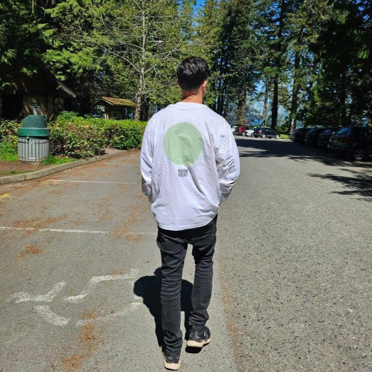 Field Notes short sleeve T-Shirt. This garment is 100% UPCYCLED! No new waste was created. I worked with the fantastic brand Ecologyst to source second-hand white tees and then we screen printed them to create one-of-a-kind tees. These are real special, and there are only a handful left.